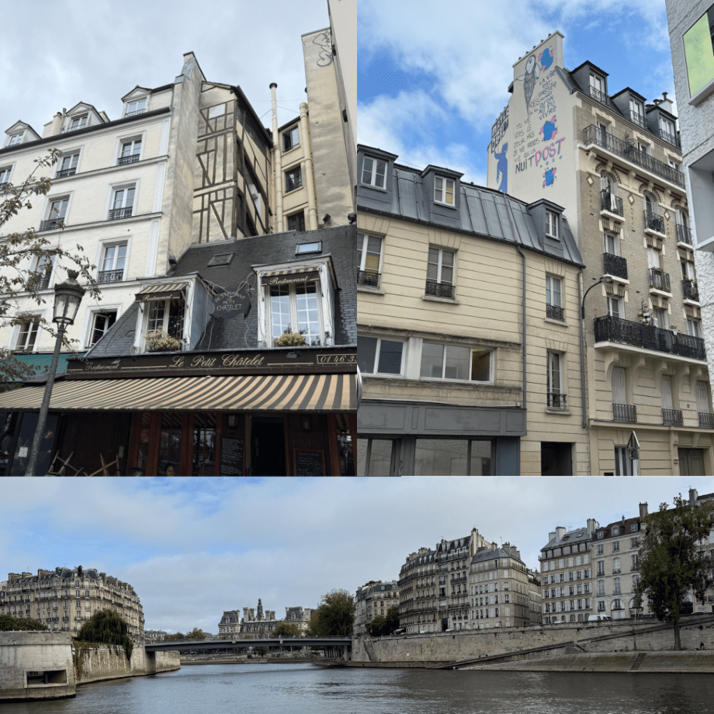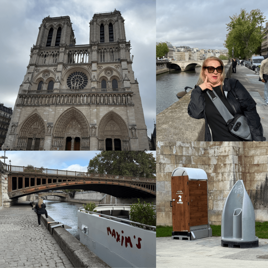 Premier jour (day one) – Another wonderful breakfast including far too many pastries and we headed off walking soon after 8am. Along the river Seine towards the old city was really interesting, a mixture of homeless folks, crazy urinals, lovely house boats and tethered bars flanked both sides. In no time we had reached the islands and Notre Dame emerged.
