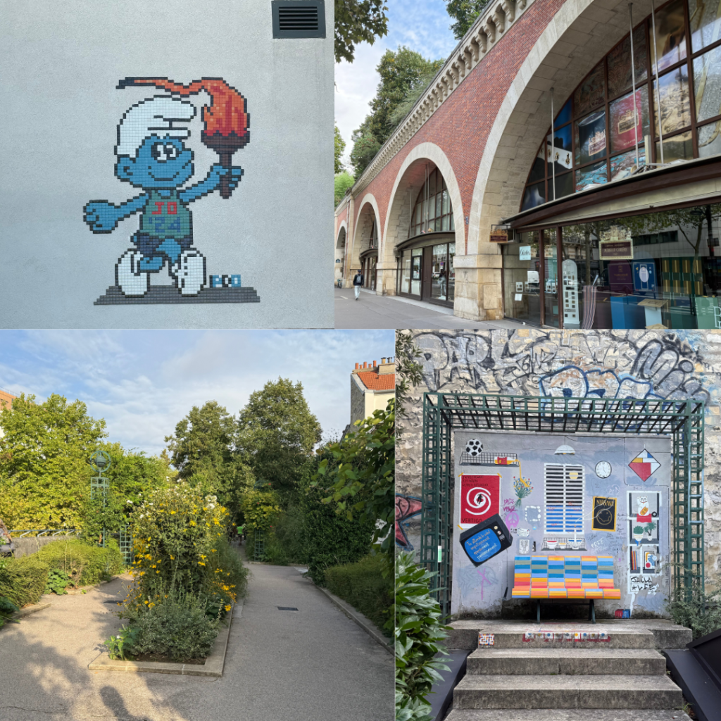 On my list for Paris was to go walking on the Coulée verte René-Dumont or Promenade plantée René-Dumont a section of former railway line now 4.7km of walkway raised above the city. It took us about 30 minutes to get through the 12th Arrondissement to join the walk. It was awesome walking this highly planted path, behind apartments, shops and hotels, it even goes through two parts of the same building in one place. One thing we have observed is Parisians run, bike and walk en masse. This walkway was full of runners.