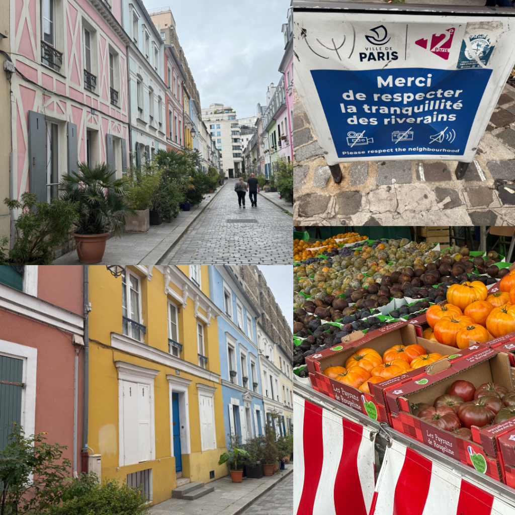 We then headed to a wonderful indoor / outdoor market – Marché d’aligre – where we marvelled at the size of the fruit and veges, the wonderful looking figs and gooseberries, plus the price of the various zespri products on offer. The next stop I took everyone on the walking tour was Rue Crémieux a picturesque street that now contains a sign asking tourists not to snap pics or film – we imagine it could have been crazy during the Olympics for the residents.