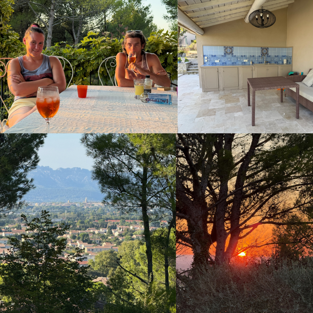 Minna who manages the house is lovely, let us arrive early, really responsive, gave us such a thorough tour and many instructions plus tips on where to go and what to do. We got there early after taking our same Uber Comfort back to the TGV station where we picked up our giant rental car (for my father it’s a Peugeot 5008 7 seater) and waited for Paul and Karen to arrive – they had flown to Lyon and TGV’d down to Avignon that morning. A long game of “can we fit all of our luggage?” tetris was played while the concerned rental car guys kept offering us an upgrade to a mini-van. The collective wisdom won and we headed off on the 30 minute drive to the villa.