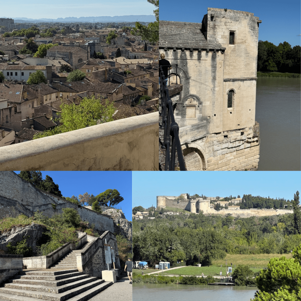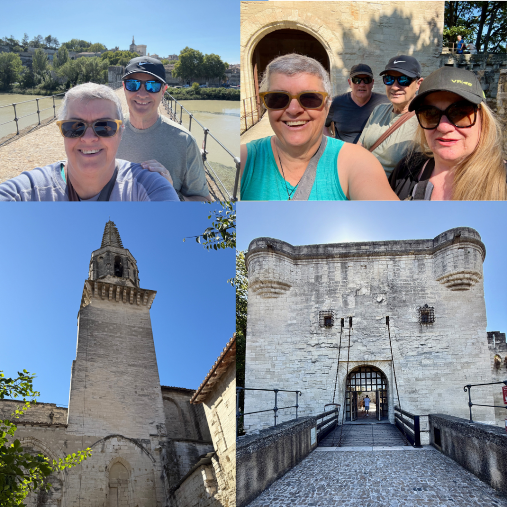 As we are in France we had fresh croissants and scrambled eggs for breakfast before heading to the highest part of the wall to look at the view which was awesome. There are loads of fortifications and castles, villages and vineyards off in the distance making it an interesting time. Sadly half of the park grounds were closed so we then headed to walk across the Pont D’Avignon – the half bridge that was built in 1177 as a whole bridge and destroyed by a King in 1226, rebuilt by the city again but then in the 1600’s fell into disrepair and unable to cope with the currents of the Rhône it started falling apart. Now the incomplete bridge is a tourist attraction.