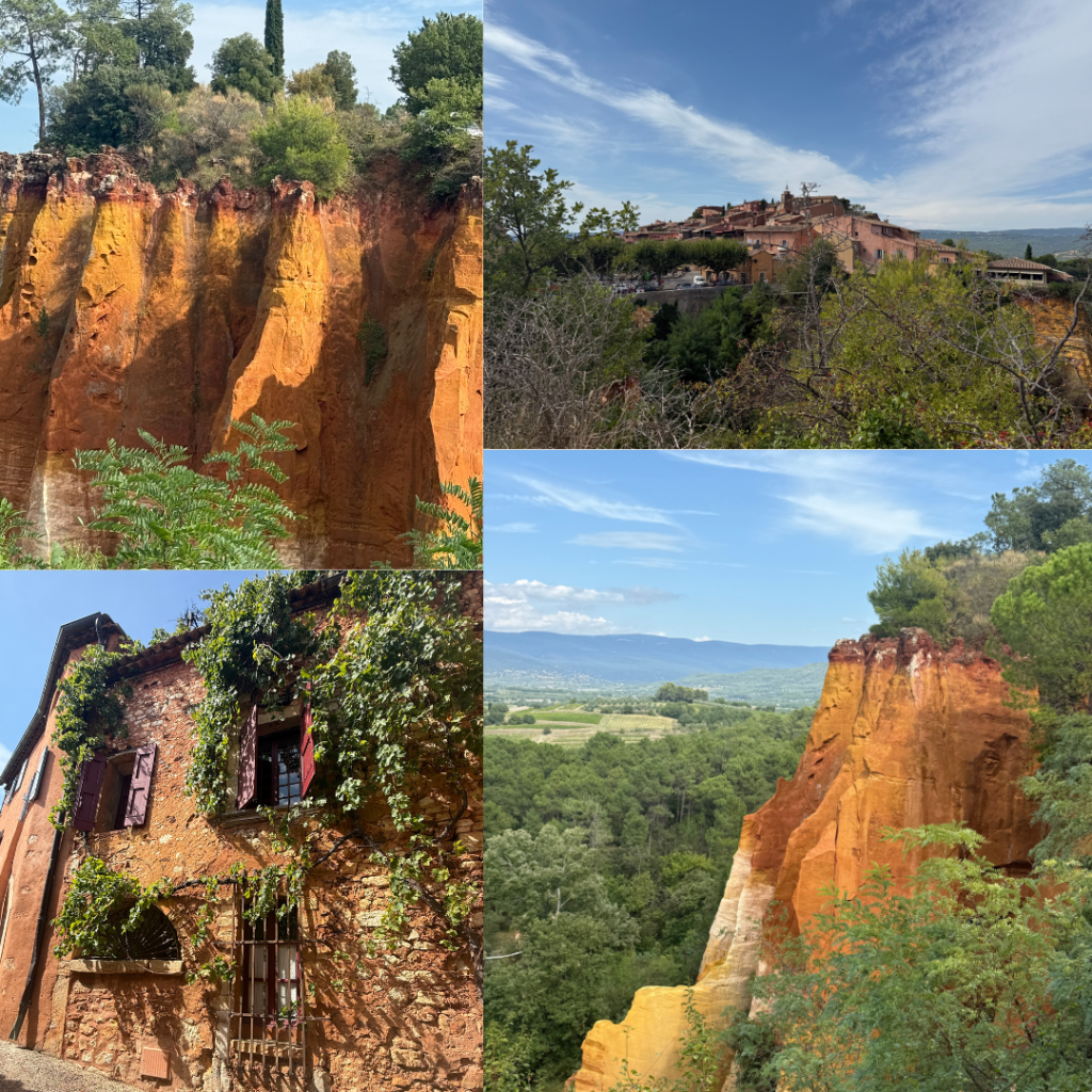 Roussillon – High on Steve’s list was Roussillon, Valcluse the Ochre town. It was too hot to do the ochre walk for us but we got to see the amazing colours of the landscape and the buildings made of varying shades of orange and reds. After an adventure trying to maneuver our giant car into one of the hillside carparks we wandered up the hill into the village, another hilltop town with slighly less steep streets but lots of fantastic platforms to survey the landscape from. It’s really very spectacular! It was nearing 2pm so we jumped into the first restaurant we could find – very touristo but our salads were nice enough and it was good to have eaten when we were all hot and a bit ratty. After lunch the tour busses arrived and the village filled up pretty quickly but there was more to see so we persevered with our exploration and loved the experience.