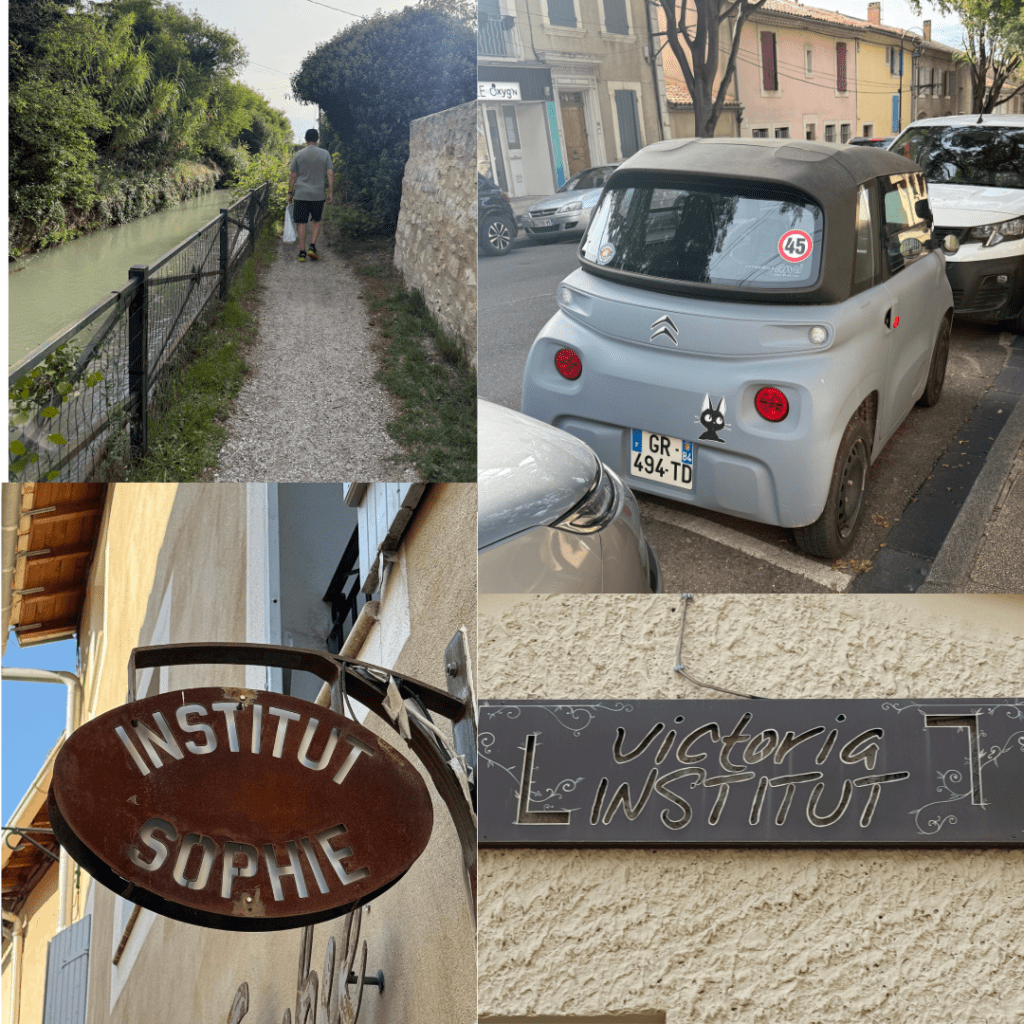 Our wee village is very cute, it sits alongside the Carpentras Canal and a series of canalside walkways. As mentioned before it contains 40+ fountains, a number of small squares, restaurants, bars and churches. The buildings are in various states of repair with some renovated into apartments and others falling down or braced to stay erect. Paul has been able to run on a variety of paths in different directions and seen some fab other sites.