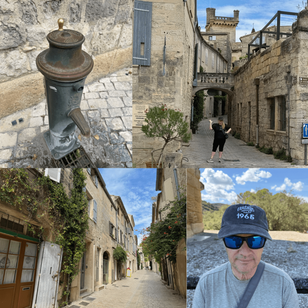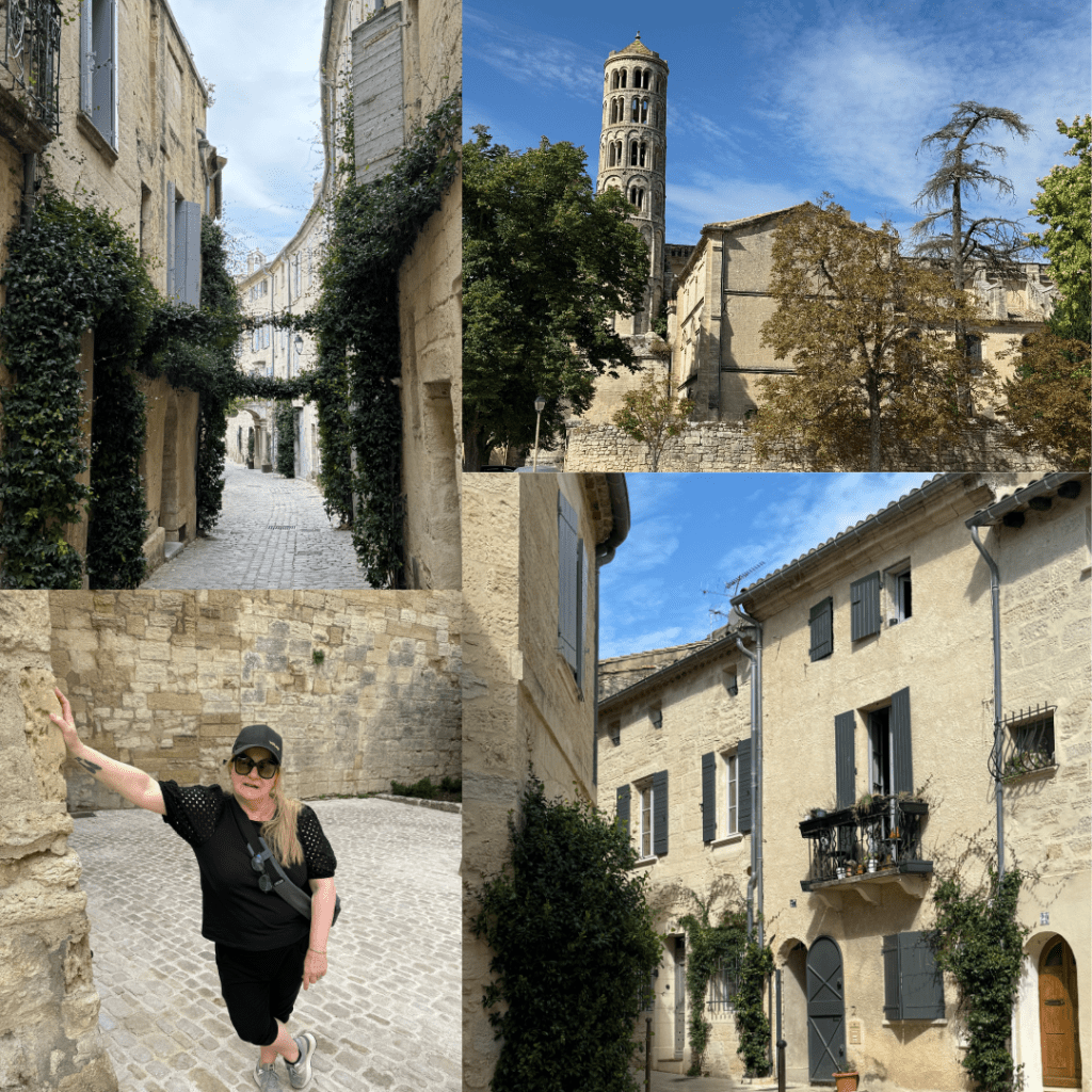 Uzès – we drove to this beautiful nearby town, slightly larger than others we had visited and beautifully preserved. Karen and Paul hadn’t eaten at Pont du Gard so headed off to find food while the rest of us secured a car-park. The roading system is a one way ring road with car-parks at key city sites so we ended up outside the Museum where a Gendarme was checking for paid parking.