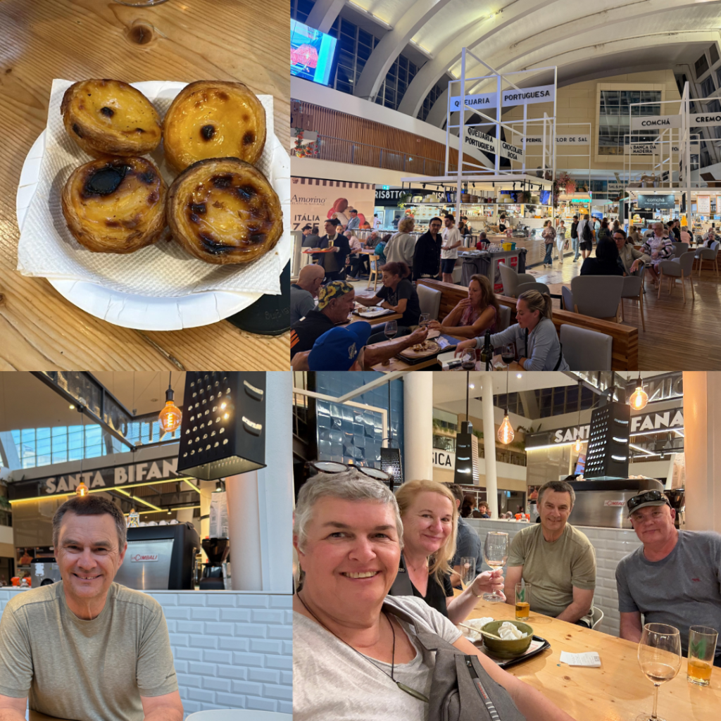 It was late in the day now so we unpacked and headed to the mall about 200m away for a nosy, a mall with a Decathlon in it (my new favourite shop), then onto the Mercado Bom Successo a fantastic up market food court right near by our apartment. It took us about 5 mins to find a table then 30 mins of people watching before even going on a reconnoiter – where our first two purchases were beers (at the massive beer bar) and wines from a wee wine bar, and our first round of pasteis de nata. Steve has limited me to 1 x pasteis de nata a day btw, they are just so yummy and not sweet at all with crisp pastry. We eventually made food decisions and all got something different, mine were empanadas filled with yummy things like goats cheese and nuts.