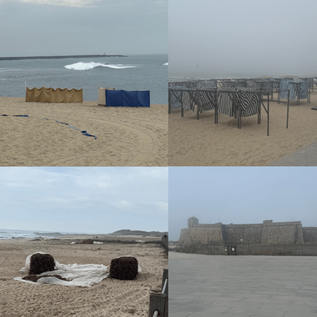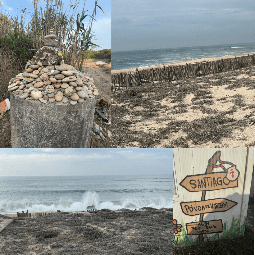 Coastal towns – This part of the route is a series of coastal towns strung together by boardwalks. Some look like Surfers Paradise, others like Mt Maunganui and others like quaint fishing villages. Until 5pm (we left at 9am) we were walking on endless boardwalks again but as we got closer to Apúlia we found ourselves on the Coastal route which was about 5-6km of narrow cobbled roads. We stopped in one of the Surfers like strips beside the coast for a pizza and salad for our lunch and toilet stop about midday and our friend the Atlantic Sea Fog came to join us for an hour or so – yay.