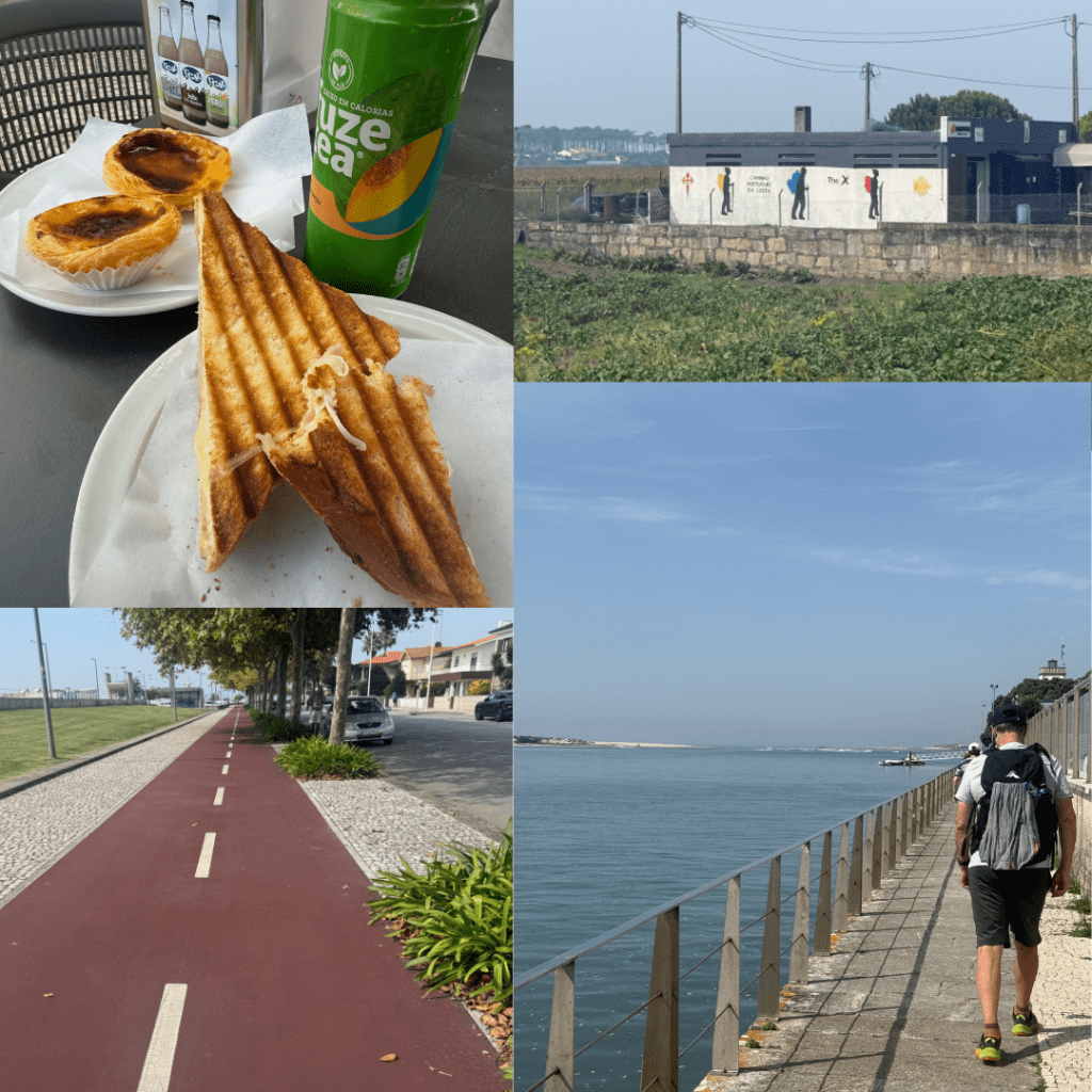 In town Imogen went to a supermarket, pharmacy and then the vegan store, she must have spent an hour in there alone so the combo of these two stops were long not to mention the additional 2kgs she added to her pack. Steve and I were starved as it was 2pm so we walked into Cafe Cine and asked for a menu, the old man shook his head no, and said only “toast” and pointed to the toasted sandwich maker, then he said a string of other things – I recognised the word fromage – so said yes gesturing 2 obrigada (thank you if you are female), pointed to two pastel de nada’s a coke zero and an iced tea and he waved us off outside – no words required. 5 minutes later these yummy ham and cheese toasties arrived along with our drinks and cakes.