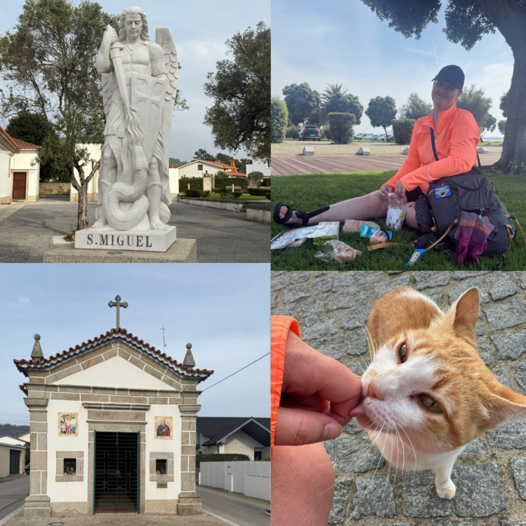 On our maps we have every vegan store pinned and this route took us to one in Marinhas a cute little town. On the walk into town we stopped at the most gorgeous souvenir shop, the X, the owner makes the majority of the stuff himself in his workshop, there is shade, seats, a toilet and a vending machine. Steve sat outside and watched hundreds of pilgrams stream past while Imogen and I browsed then queued – which took forever as he made a point of chatting with every walker and gave us a stamp.
