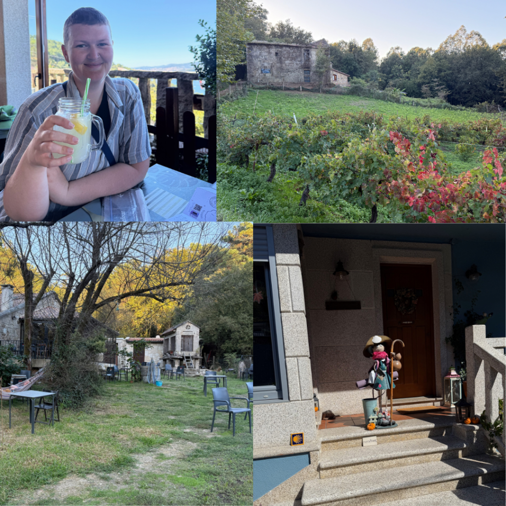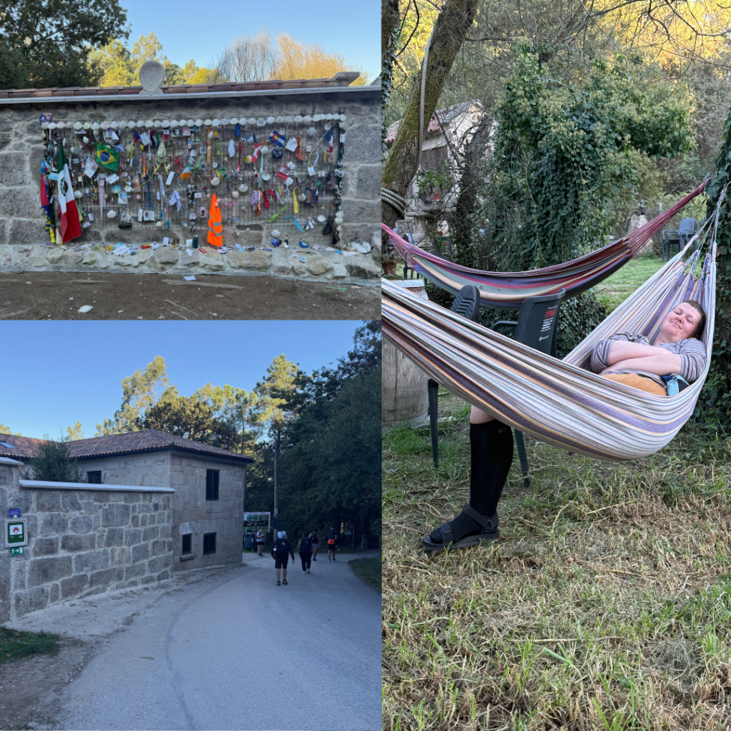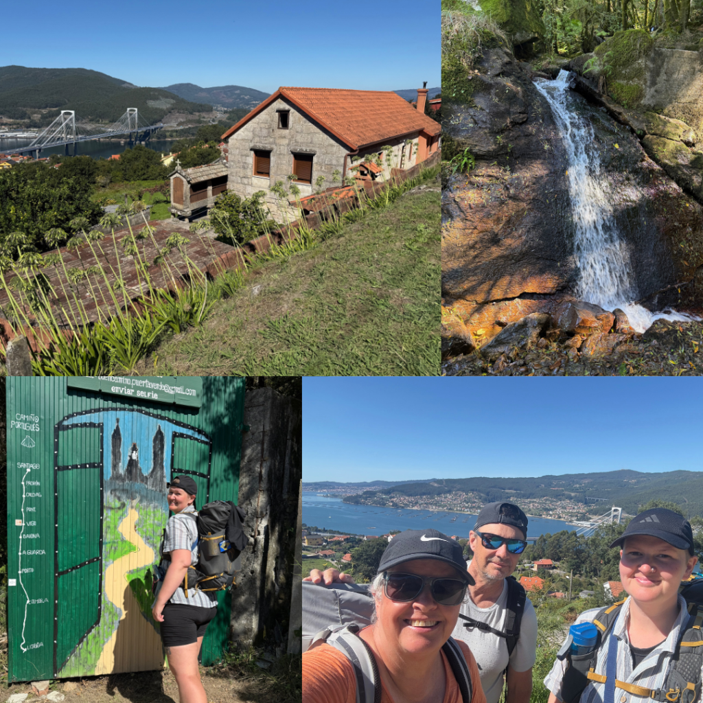 As we all know what goes up eventually must come down, and the steep up from before meant we had an equally steep walk downhill on our way to Redondela – and my knees hated it. The new poles were really helpful but after the week of hills I was struggling. We got into town and headed into the first cafe for a drink and snack, it was still another 4km uphill to our accommodation and we quickly decided it would be best if I took a taxi and the bags leaving Steve and Imogen free to walk up unencumbered. We were also getting close to the 6pm checkin closing time so I asked the bar staff to call me a taxi and away I went.
