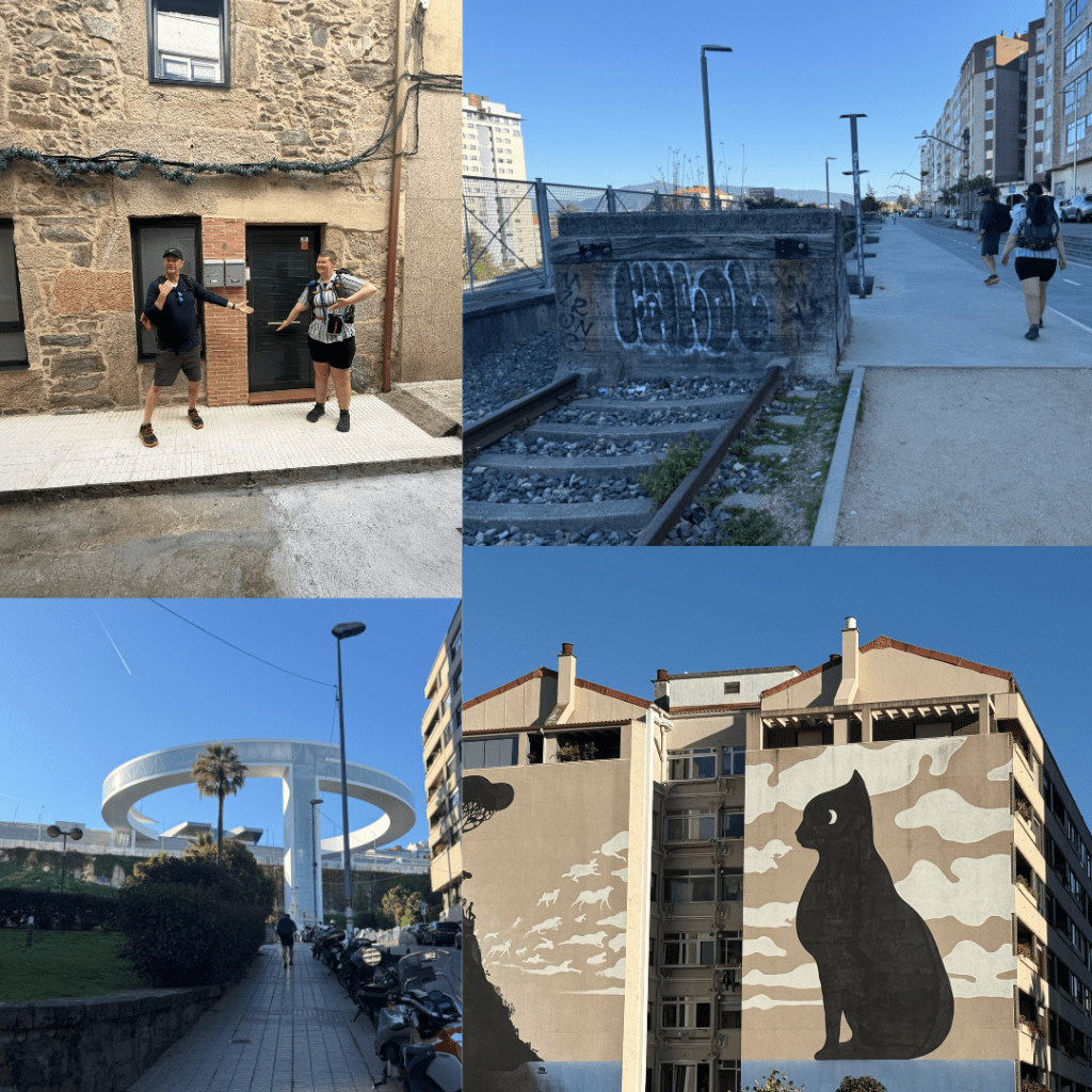 Today we walked from Vigo to just past Redondela. When we went to the mall last night we also observed the Ascensor Halo a free elevator that would take us up to the mall then onto a massive urban walkway running along a disused railway line above the city. I’d been reading about how to join the Camino from this angle on a few forums. Along the way we saw loads of people exercising, walking dogs, using the outdoor equipment supplied by the city. One old man stopped us to explain we were not on the official Camino route and how to join it – which is where we were heading.