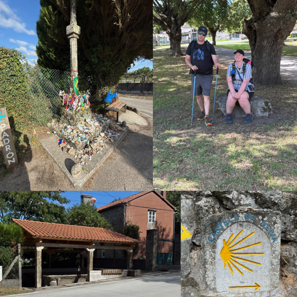 By now we had decided that we’d make a call on stopping or continuing at a suburb about 8km outside of Santiago called O Milladoiro. A curious thing I haven’t mentioned is every little town we walk through has an old fashioned laundry that is no longer in use for that purpose but we think it’s fantastic that these stone buildings were built everywhere. Many were fed by natural springs and one night on the walk we saw pilgrims soaking their feet in one town. Others were now where folks came to fill their large water containers, others were full of weeds and left in disrepair.