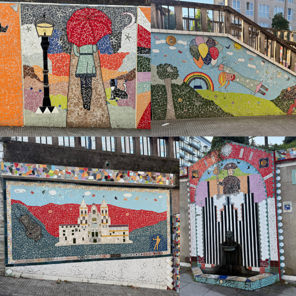 With no Bolt or Uber available – people in all the message groups said they were but we kept getting the message “no rides available” we decided to be brave and take a bus back to O Milladoiro. It cost €5.60 for the three of us and took about 20 minutes. Once off we wandered up the hill – Steve skipping – with no heavy bags it was a breeze, Imogen carrying our water for the day and me my poles and crossbody bag. We soon saw the Camino path and other pilgrims so joined the steady stream walking into Santiago.