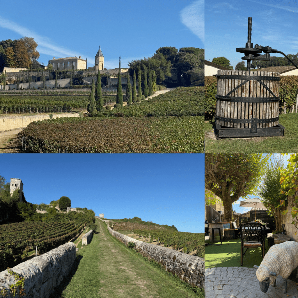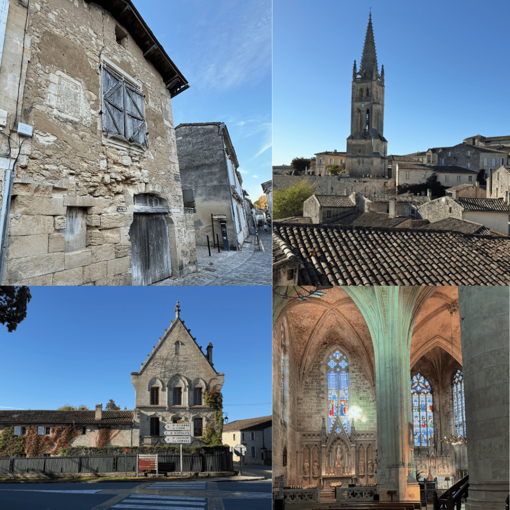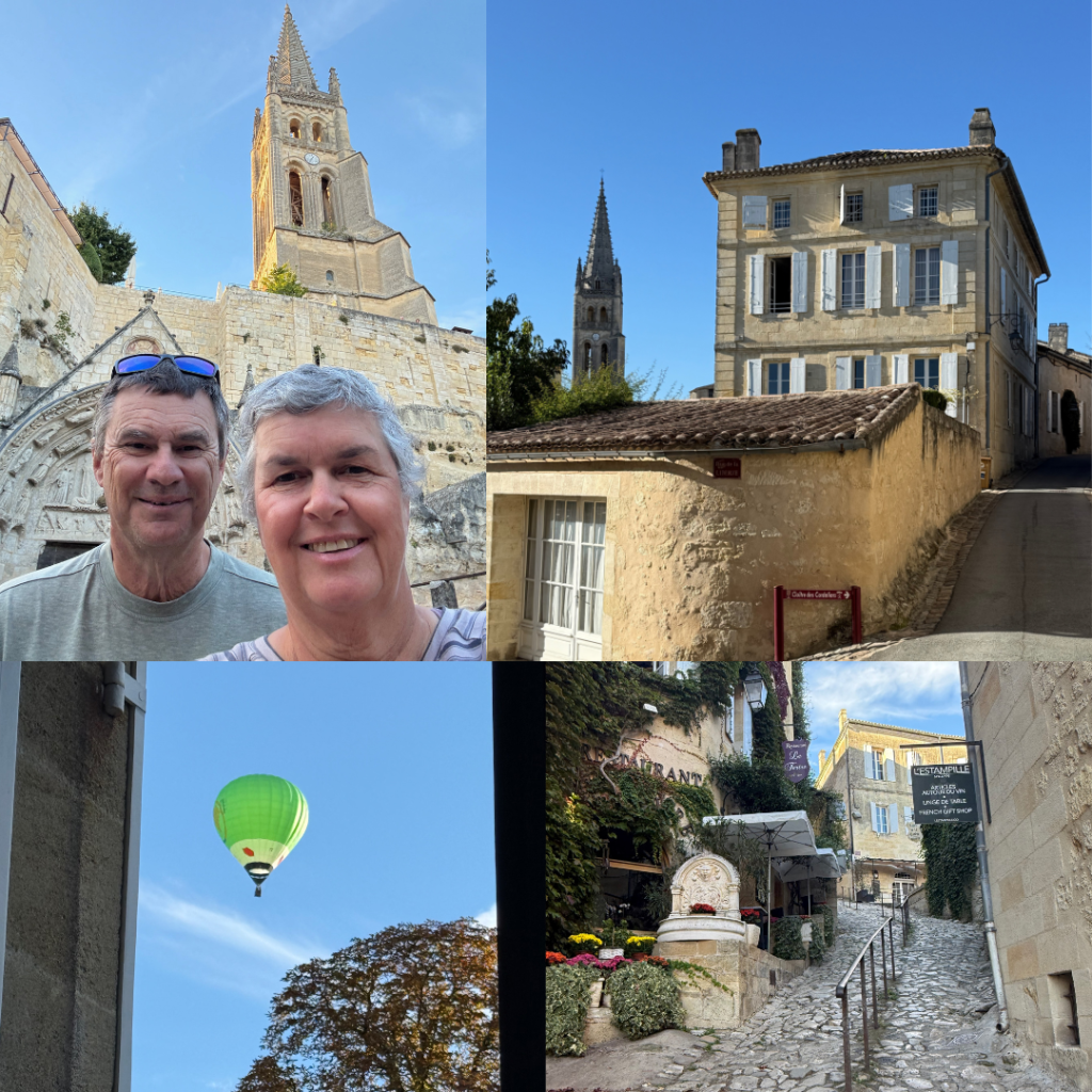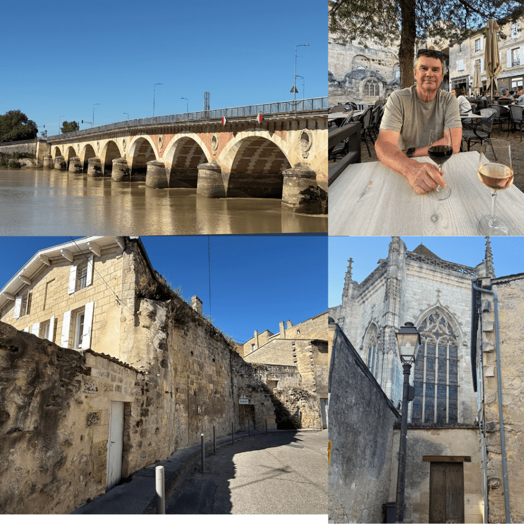Walking – Steve has very diligently ensured we walk 10km every day while staying in Saint-Émilion, this means a walk down from the village through the country lanes which are mostly edged with 1m high stone walls. Followed by a walk back up. Depending on when we leave it can be quite hot when walking back up the hill and I got a blister in my sandals with sweaty feet one day. Otherwise it’s been amazing to see nothing but vineyards, no paddocks, no livestock just grapes. Even in Libourne there are grapes grown right up to the edge of dystopian looking apartment blocks on the outskirts of the city.
