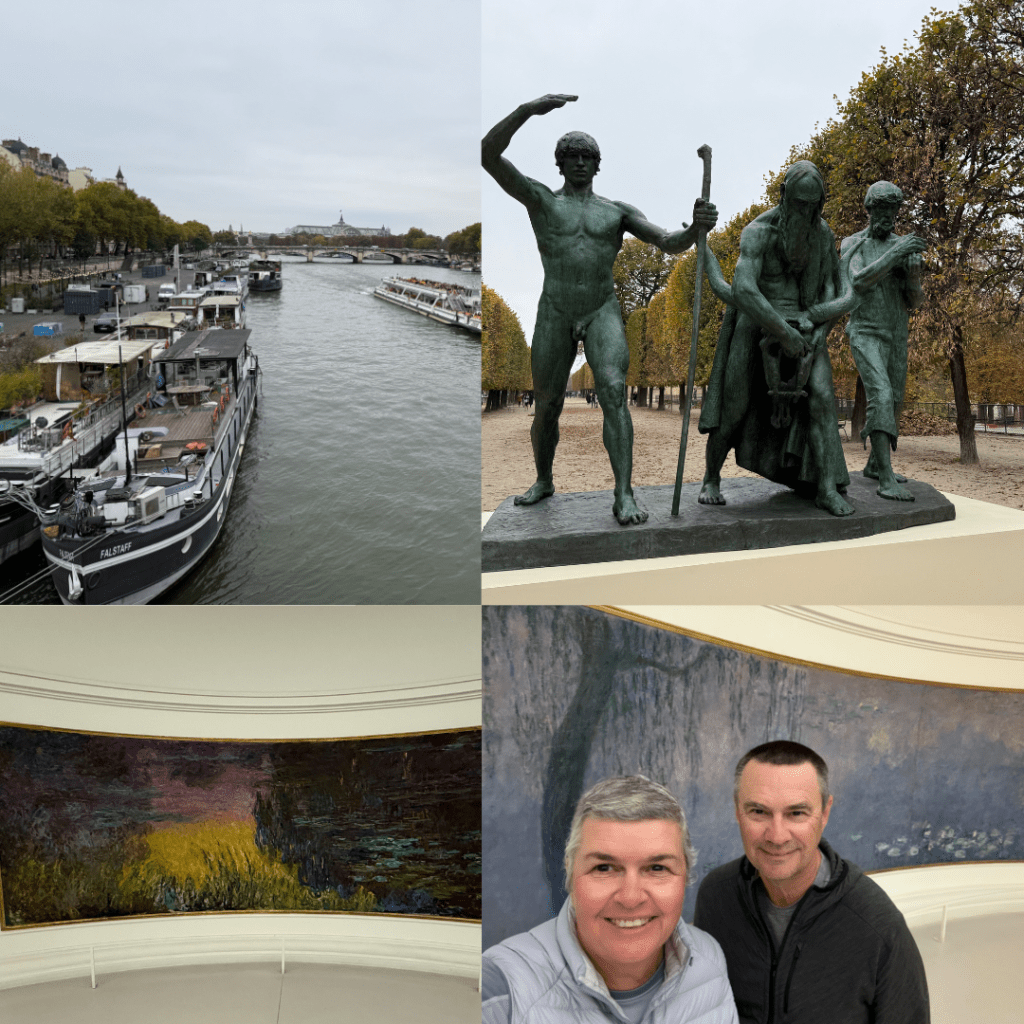 We couldn’t buy a same day ticket so we walked there and queued. We haven’t stayed in the 6th Arrondissment before so the walk through Saint Germaine was lovely. The queue was moving along ok and it only took about 45 mins to get inside. We had a lovely chat with the couple in front of us, young Australian Americans who live in Ireland on their first trip to Paris. The Monet collection was crowded and wonderful, funnily enough we think these were not his best water lilies and have seen others in other museums we enjoyed more – more vibrant I guess. The galleries are oval which allows you to see the large canvas in a single view. Loved being there.