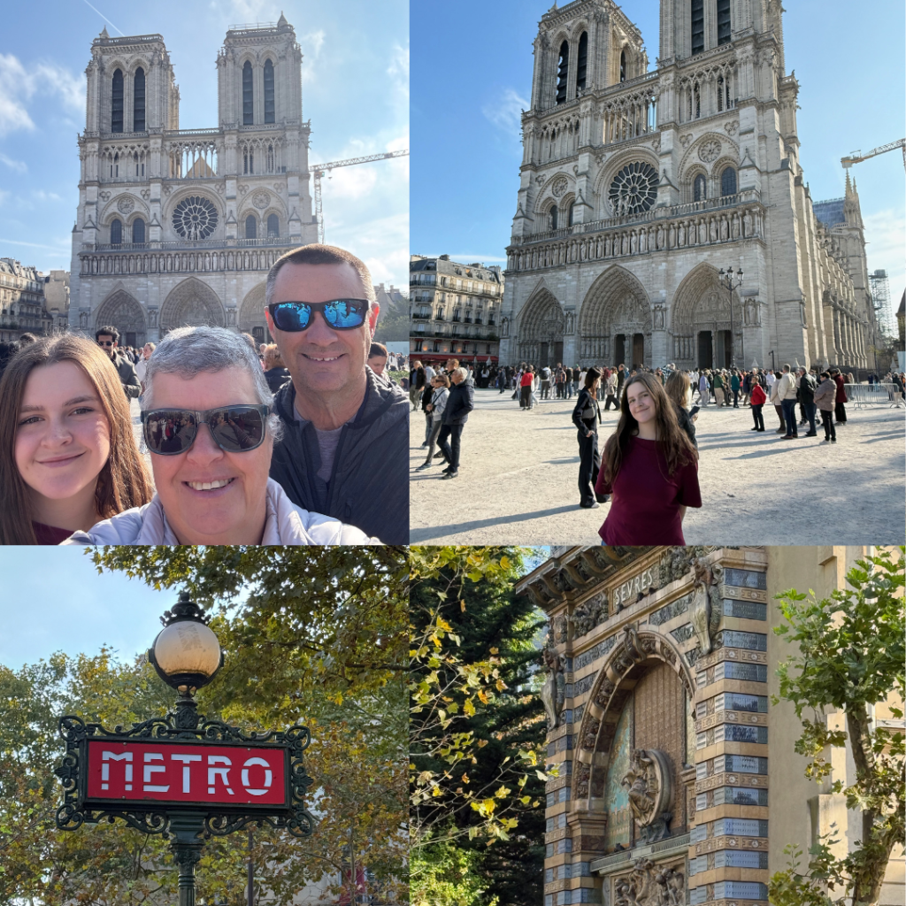 We headed on a fab walk – through Saint Germain, into the Latin Quarter, fought our way to get to see Notre-Dame where the queue was hours long, then did the same to visit the Louvre pyramids before walking through Jardine des Tulleries where we stopped for a snack and people watched for a wee break. Then up Champs-Élysées which was wall to wall people. Needing a loo stop Milla went into a McDonalds to find a queue of 25+ people so we ended up in an English pub where we bought lunch – no not Parisian food but good pub grub and the toilets were clean.