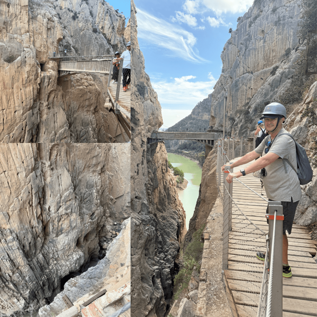 This track was originally built so the King Alfonso XIII of Spain could officially open the hydroelectric scheme when it started operating in 1921 (they started building it 20 years earlier) so they built him a special walkway to get there, and an observation platform – hence the name. But it wasn’t well maintained and became dangerous with sections falling off and casualties so they closed the track but people still went there and casualties continued to occur until about 2000 when the government decided to rebuild as a tourist attraction (which reopened in 2015). You can still see the remnants of the old walkway along the route, rusted and certainly not as well anchored into the rock as the new path.