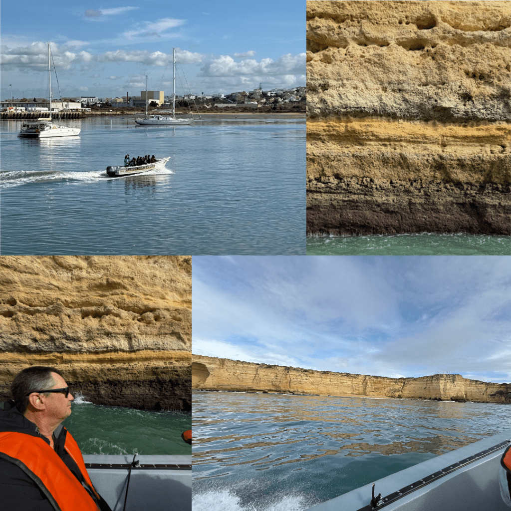 The tour took us along the coastline north past beautiful beaches and along the cliff lined coast. It was amazing seeing the cliffs up close and from below like this, they are 20m-40m high so loom above you. The rock has wonderfully coloured layers and the waves surging against them bring out different colours. The cliffs are a sandstone so they are full of holes, caves and caverns. Our boat driver had incredible control of the boat, navigating the surging tide, taking us into caves and out again without hitting the walls and avoiding other boats along the way.