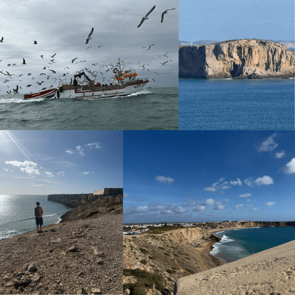 The peninsula has been considered significant by everyone who has inhabited the region, the Moors, the Romans, Portuguese and Spanish at different times, mostly for spiritual reasons. The cliffs are 40M high and the land is so arid, virtually nothing grows there, not to mention it’s really windswept. In one of the bays below us there were tens if not hundreds of surfers sitting on the boards. On the edges of the cliffs there were fishermen casting their lines from really precarious positions on the rocks into the sea 40M below! they seemed to be catching a steady flow of small fish, so successful place to fish from.
