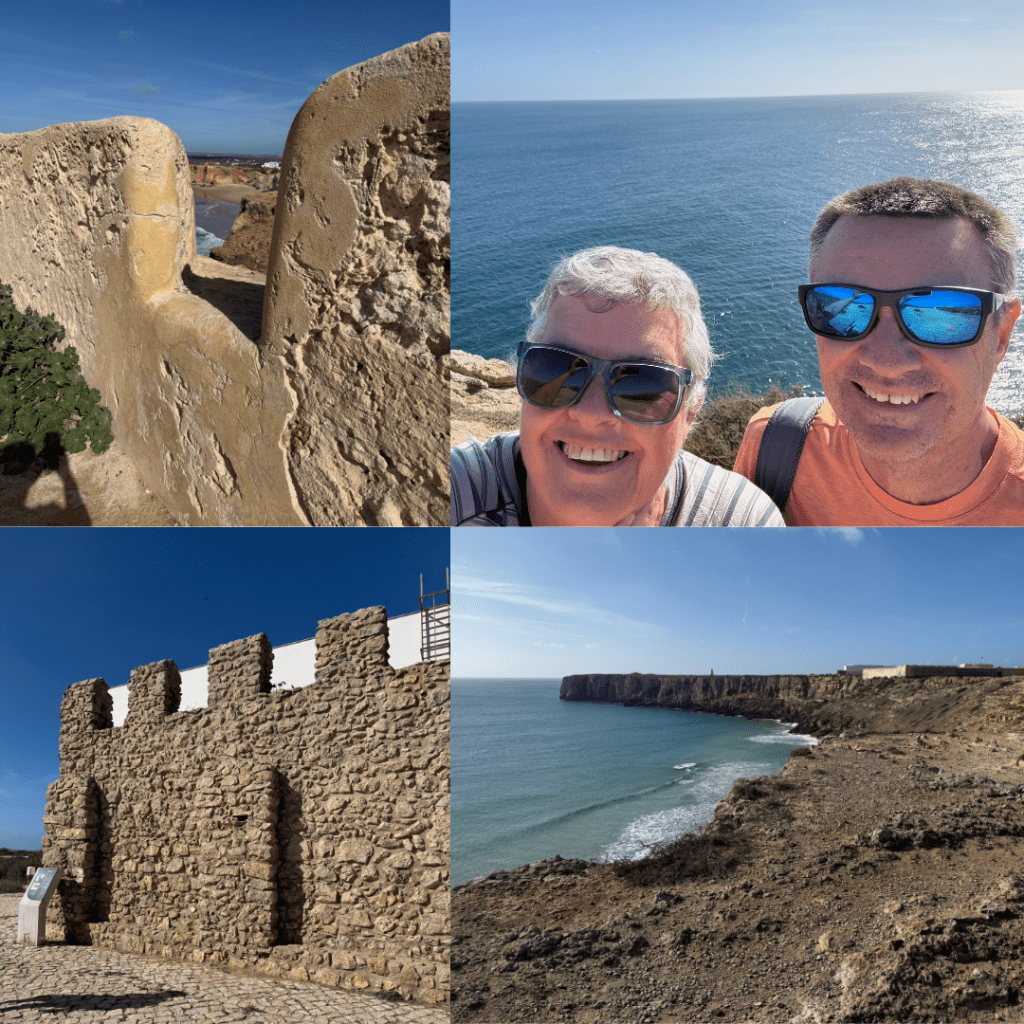 The drive there was mostly on the N124 which is like SH1 in NZ in terms of quality and has as many roundabouts too (but hardly any traffic lights) so flows really well. The landscape is very open with only grape vines and orange trees occasionally in fields. We drove past a few camping grounds which seemed to be in the middle of nowhere – one of our observations for campervans in Portugal is the places people can park are either a paved carpark (like the one at the fortress) or beachside carpark with no facilities whatsoever. On the way back we had a wee drive through other Lagos suburbs that are all apartment buildings with many many new ones under construction with cranes everywhere. Most of these might have glimpses of the sea but are well back from the shore and the town so I hope there will be shops and food places created alongside this accommodation.