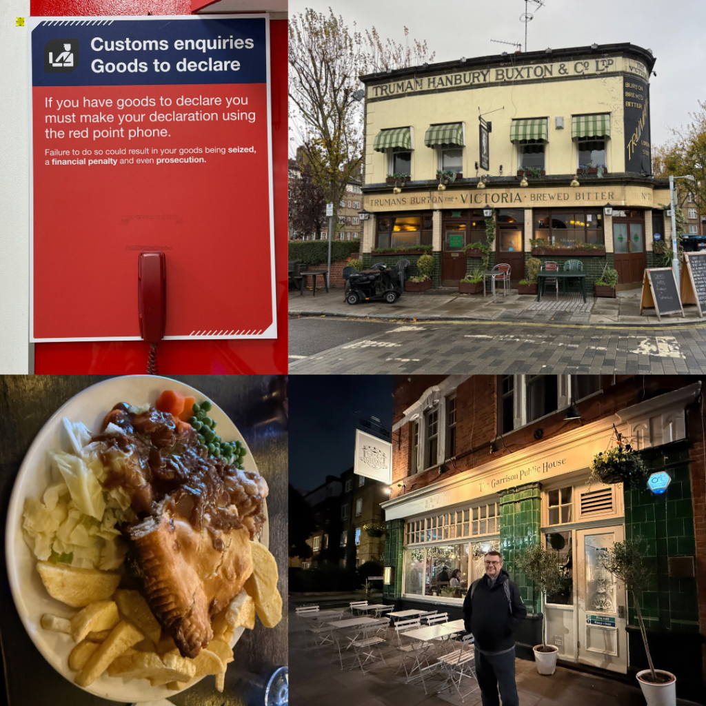 We flew back from Zürich into Luton. Luton airport (and probably all UK airports) doesn’t have a “something to declare” exit, but has this great sign and phone you can dob yourself in at. After evaluating options we got an Uber to Bermondsey where we’d rented a one bedroom apartment for 2 nights. Such an awesome part of the city to base ourselves in and an area we hadn’t really explored before.