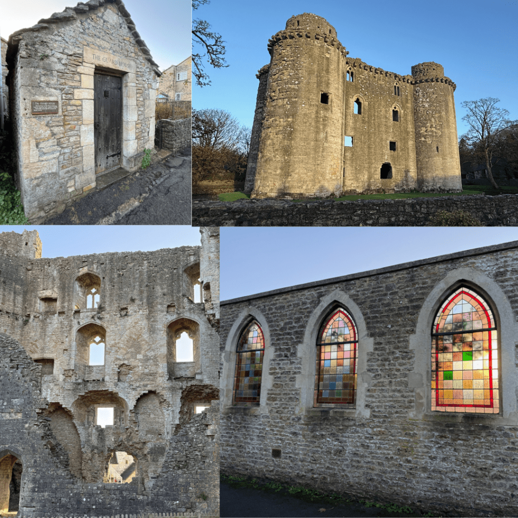 Nunney – is a tiny village, there is a wee store, a cafe, a pub, a castle and a couple of churches – one of which is now used as a hall. Our cottage was part of an old stables which is now a terrace of cottages. At the end of the row is a one room tiny historic jailhouse. To the back is a creek which really filled up on the first day we were there after a very decent downpour overnight.