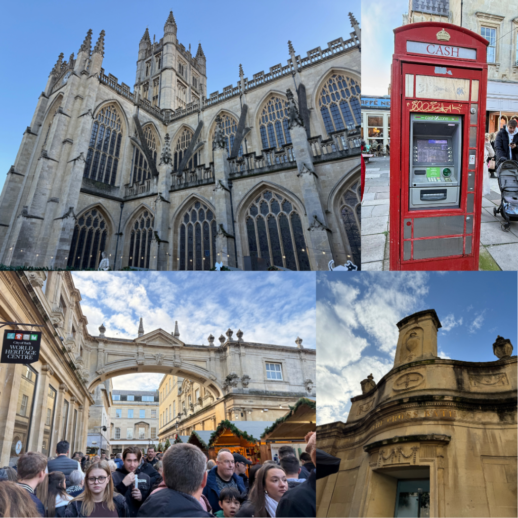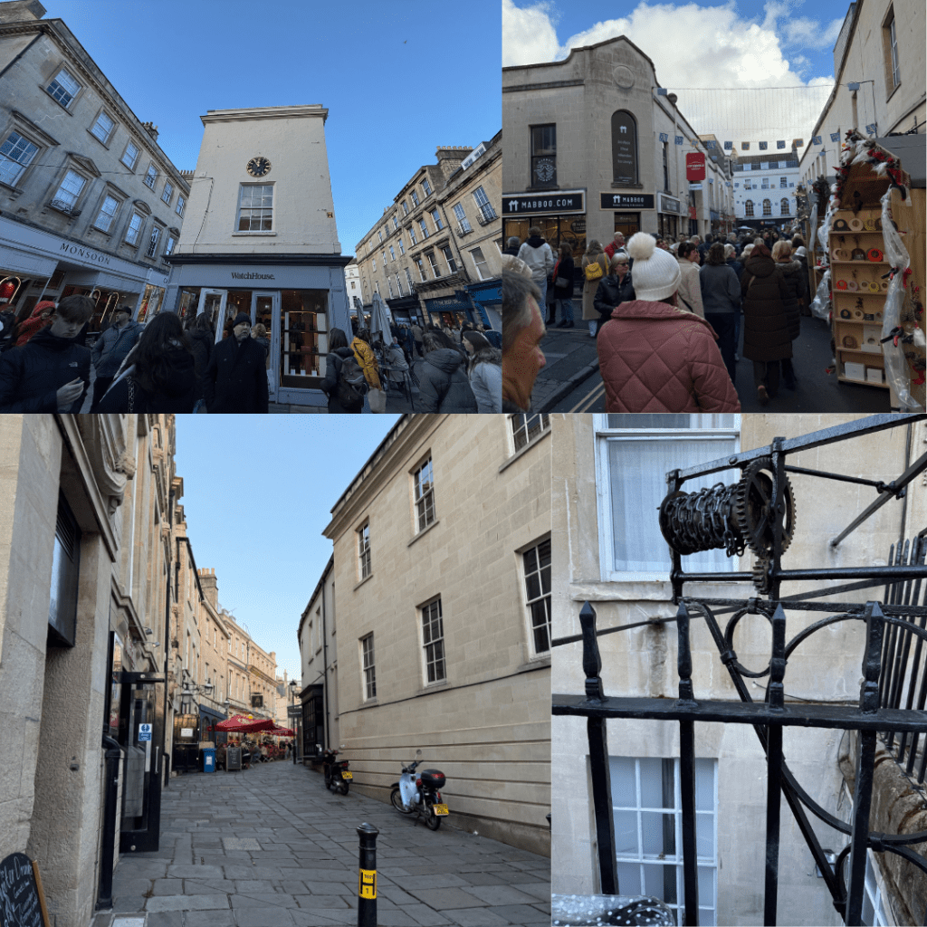 Bath – the Christmas markets in Bath are extensive, taking up the whole town, they had an excellent park and ride system in place which channeled everyone to a massive carpark on the outskirts of town and brought us in via double decker buses which flowed constantly. We got to sit up top right at the front on the way into Bath so got a lovely sense for the town.