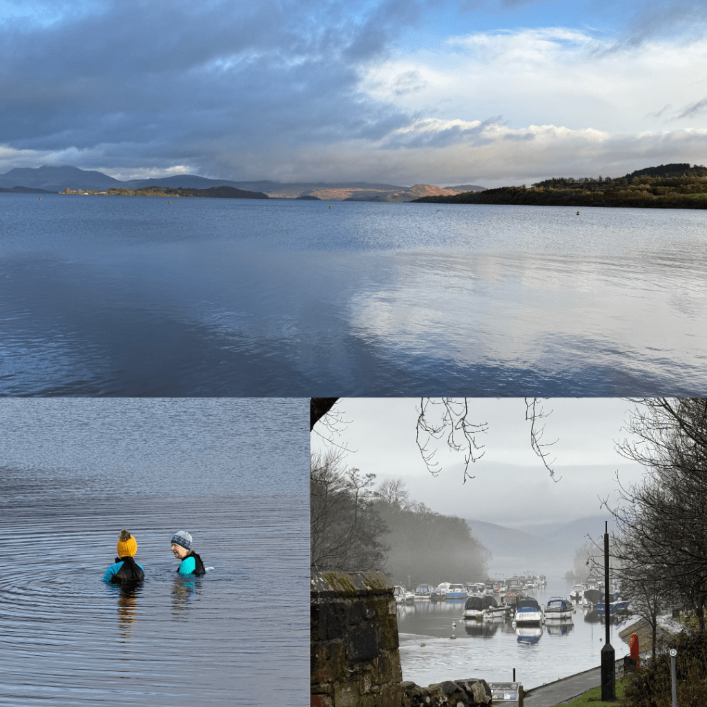 Loch Lamond – Next morning there was a break in the rain so we headed to the lake. We parked at a wee inlet where two older women were in swimming having a natter, they had their woollen hats on, full wetsuits including booties and bobbed around chatting the whole time we were there. The lake is gorgeous, we can see why people come to stay here. There are grand buildings along the way, some hotels and others private residences. We also saw golf courses on the lakeside and plenty of B&B’s.