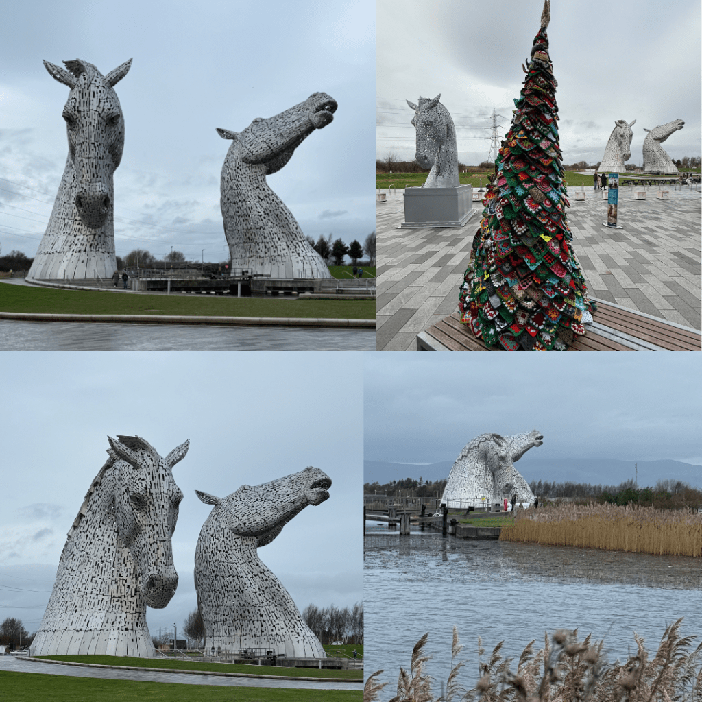 Two days after we visited the Kelpies had their winter coats installed, designed to protect the punters from icicles forming and falling, they cover them in Christmas inspired inflatable jackets apparently.