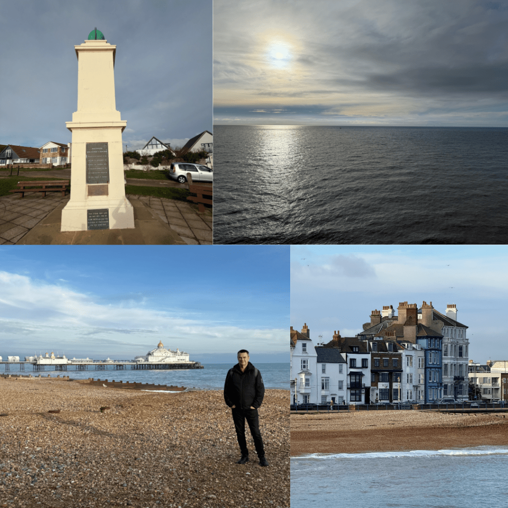 Like Brighton Eastbourne has a long wide straight beach with stone which isn’t quite as orange in colour but equally challenging to walk in with no bed of sand in place. We walked out on the pier where pretty much everything is closed for the winter, then along part of the esplanade before walking back into town. It was mid-afternoon and we hadn’t had lunch so a quick milkshake and muffin in a cafe and stroll around the CBD before we got back on the bus and dozed all the way back to Brighton.