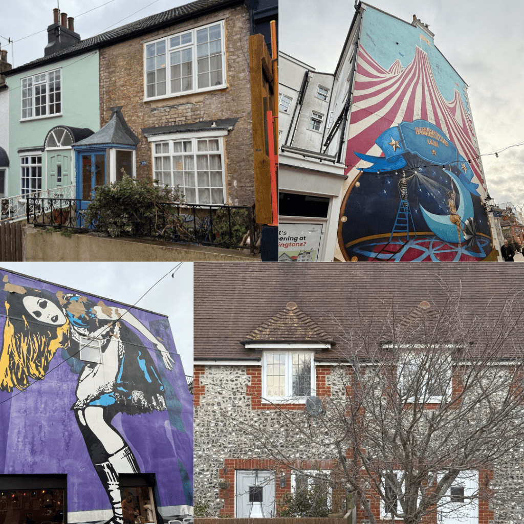 By now the wind was up and the “feels like” temperature -5C so we headed inland and walked on a parallel street back to Brighton township. Lots of independent shops and restaurants in cute buildings before we hit the big chain stores including an Ikea as we reached the centre of town. Very ready for lunch we found a pub without people (didn’t have a kitchen) for a toilet stop then carried on and managed to get into a really cute place for yummy mid-afternoon lunch in a warm place.
